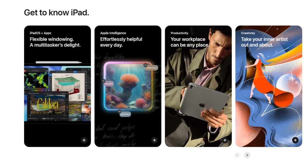 Visit Apple’s iPad page and you’ll notice something: the specifications are there, but they’re almost incidental. What you encounter first is the imagery, the language of possibility — “your workplace can be any place,” “your classroom can be anywhere.” By the time you’re reading chip speeds and storage options, you’ve already been sold on an idea. The product just happens to be how you get there.
